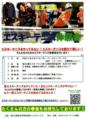 9月27日(日)に広島市西区の竜王公園にてエスキーテニス体験会を開催します!